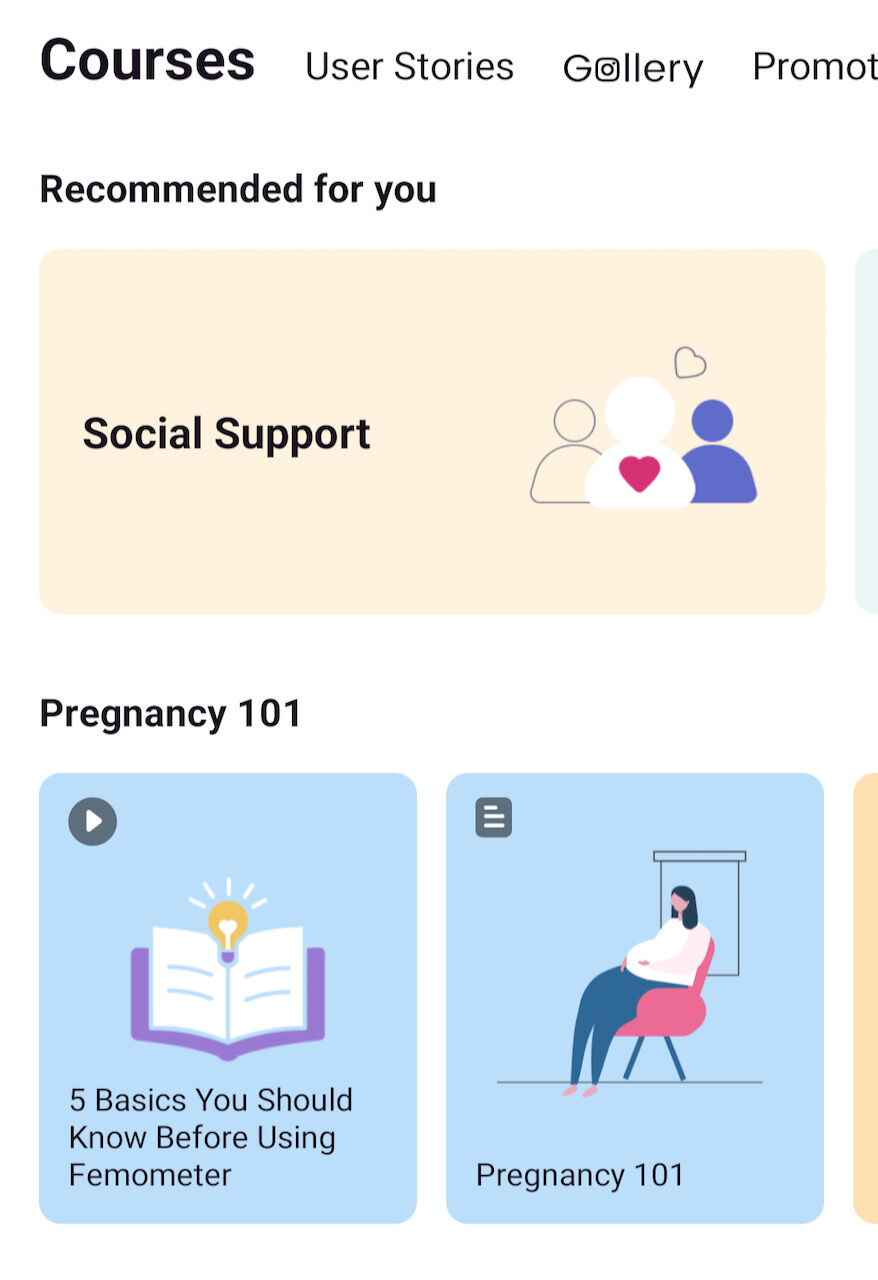 Contentメニューは妊娠にまつわるいろんなトピックをビデオや記事形式で見せてくれます。あとはソーシャル機能(User Stories)もあったり。これは無料版でもみれるみたいですね。