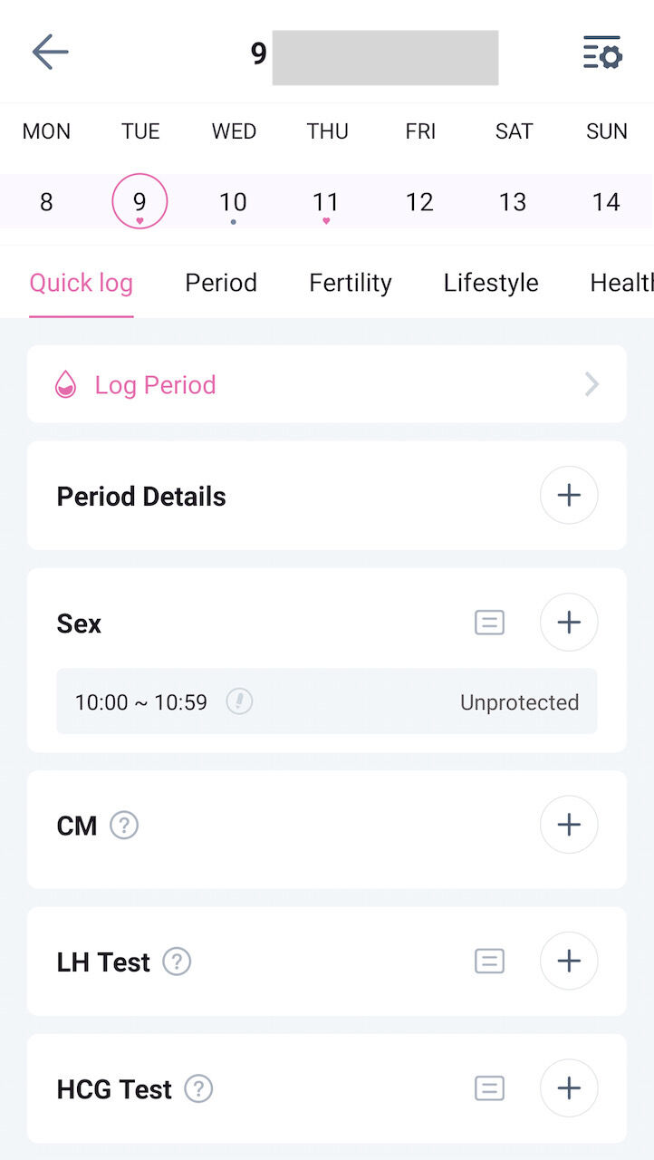 このアプリでは、Fitbitにもある生理期間の予測・ログや、排卵・妊娠の可能性が上がる期間の予測・ログ機能だけでなく