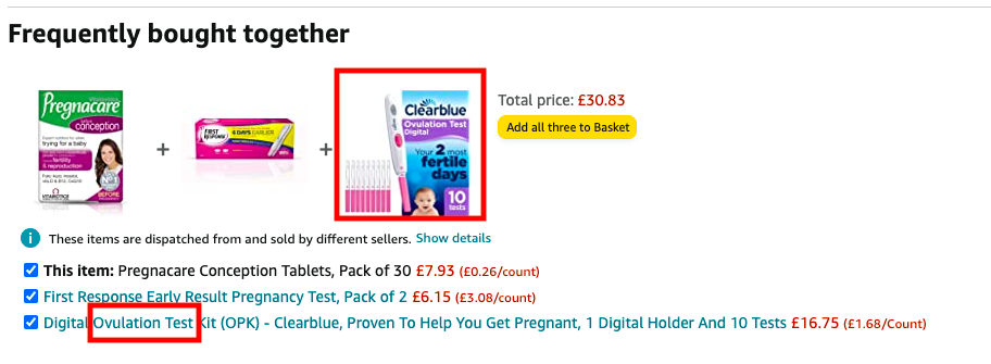 みてるうちに、排卵検査薬と妊娠検査薬をセットで売ってるFemometerというのを見つけました。(イギリスのアマゾン)