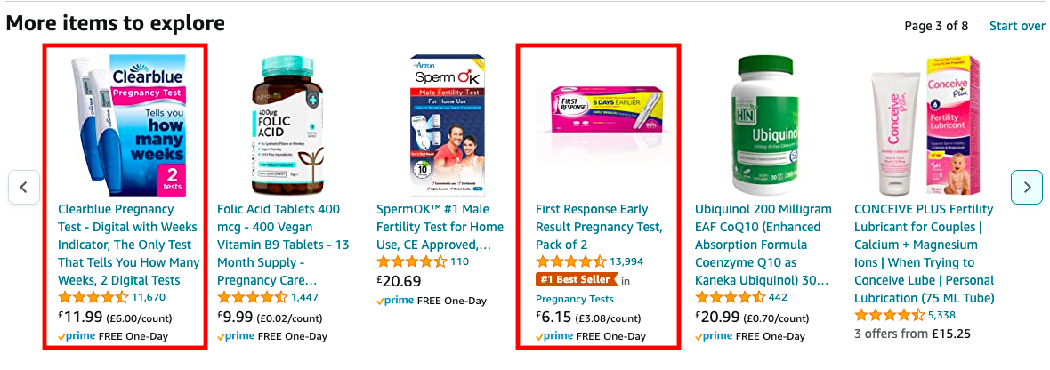 Pregnacare(友人にオススメされた妊活サプリ)を探していると、(当然ですが)妊娠検査薬(Pregnancy Test)がいくつも出てきて。