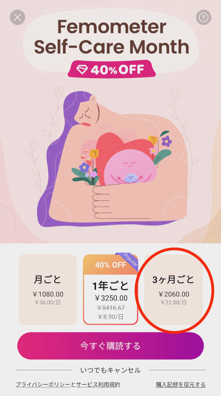 と少し願掛けのような思いもあり、3ヶ月を選択。